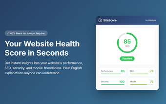 SiteScore by Glimbyte är ett kostnadsfritt tillägg för Chrome som erbjuder en snabb och enkel analys av webbplatsers hälsa. Med ett användarvänligt gränssnitt och en poängskala från 0 till 100, ger SiteScore en tydlig översikt av webbplatsens prestanda, SEO, säkerhet och mobilvänlighet. Användare kan få en snabb bedömning av deras webbplatser med en enkel knapptryckning, utan behov av teknisk kunskap. Tjänsten är helt gratis och ger användarna handfasta rekommendationer för förbättringar.